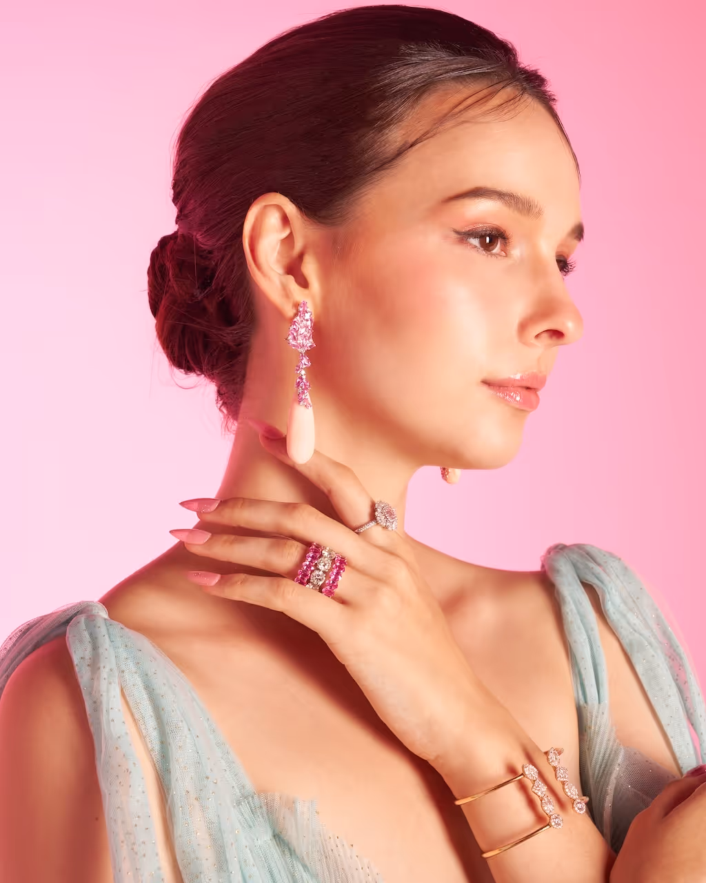 Inspired by the wild collection through a harmonious blend of nature and luxury. A celebration of floral beauty and fine jewelry coexisting in a single frame.